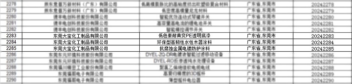 近日,廣東省高新技術企業協會正式公布了2024年廣東省名優高新技術產品名單。大寶漆的三款產品——低色素耐黃變PE透明底漆、環保型高韌性水性木器涂料和抗腐蝕金屬電鍍防護涂料成功上榜,彰顯了企業在科技創新和產品質量方面的卓越實力。