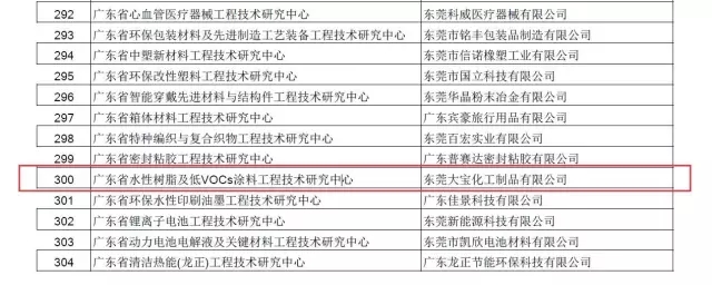 日前,為深入實施創(chuàng)新驅(qū)動發(fā)展戰(zhàn)略,深化產(chǎn)學研合作,增強企業(yè)、高校和科研院所的技術(shù)創(chuàng)新能力,加快科技成果轉(zhuǎn)化,廣東省科學技術(shù)廳開展了“2016年度廣東省工程技術(shù)研究中心認定工作”,水性樹脂及低VOCs涂料工程技術(shù)研究中心中心落戶東莞大寶化工。