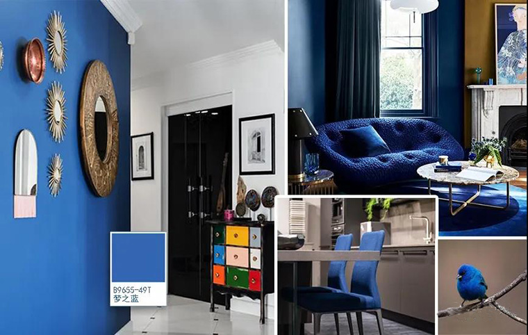 藍(lán)色沉穩(wěn)與靜謐同時(shí)也代表鼓勵(lì)深思、正念(mindfulness)是流行色的常客,今年再次入圍,應(yīng)用于走廊過道背景墻,打造低調(diào)高雅的氣質(zhì),好像把美術(shù)館搬回家了!